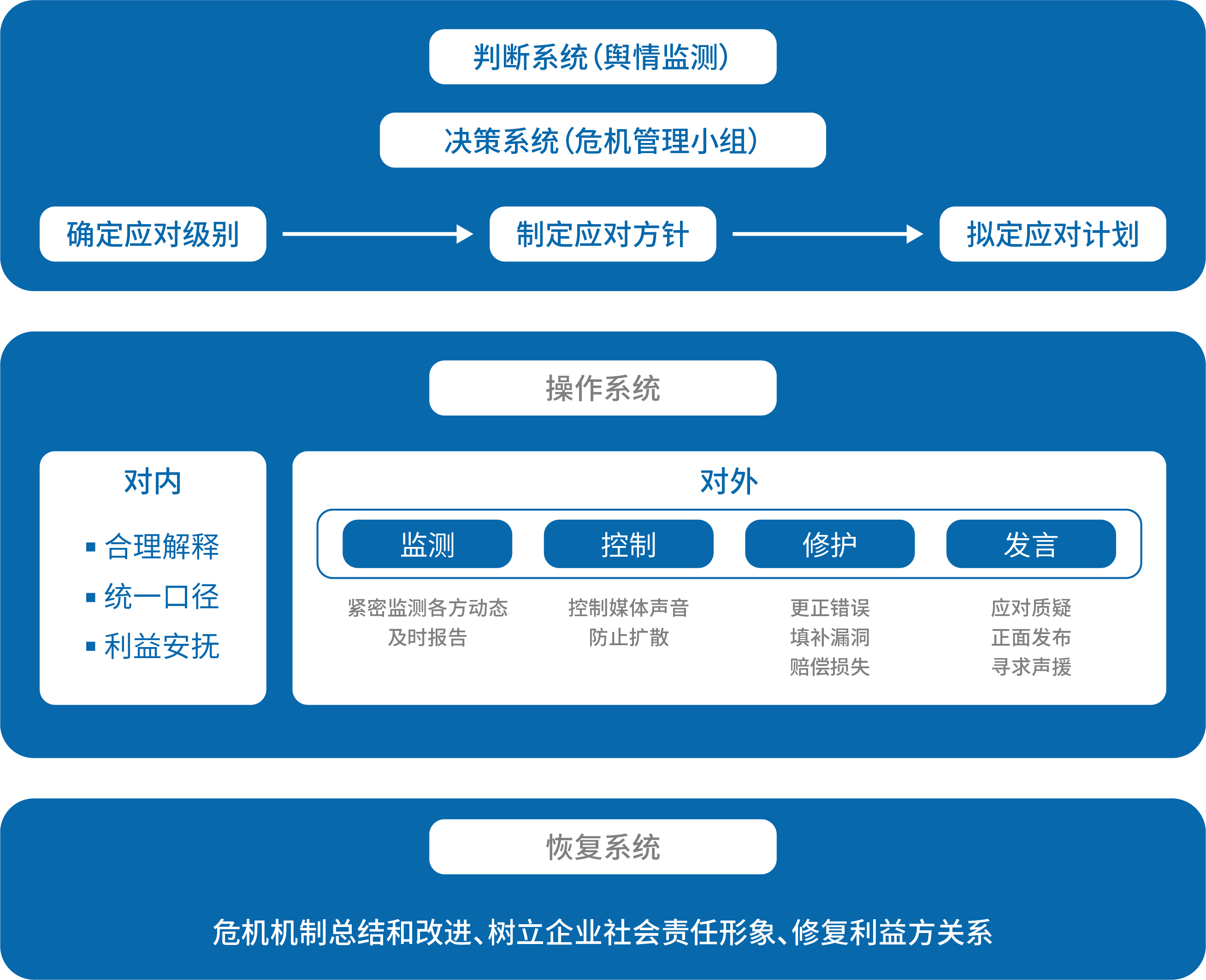 我們擁有原創(chuàng)危機管理領(lǐng)域自主知識產(chǎn)權(quán),完善的危機應(yīng)對處理體系、專業(yè)危機公關(guān)團隊、突發(fā)事件應(yīng)急管理機制、新聞發(fā)言人制度,公司運作高效,面對危機,我們能第一時間做出反應(yīng),為客戶提供重大危機事件上門服務(wù),就重大事件進行磋商,進行危機公關(guān)與新聞發(fā)言的分析、論證,并提出解決方案并形成報告,通過精準的研判為客戶提供一站式的危機解決服務(wù),幫您優(yōu)化輿論環(huán)境,化解危機事件。