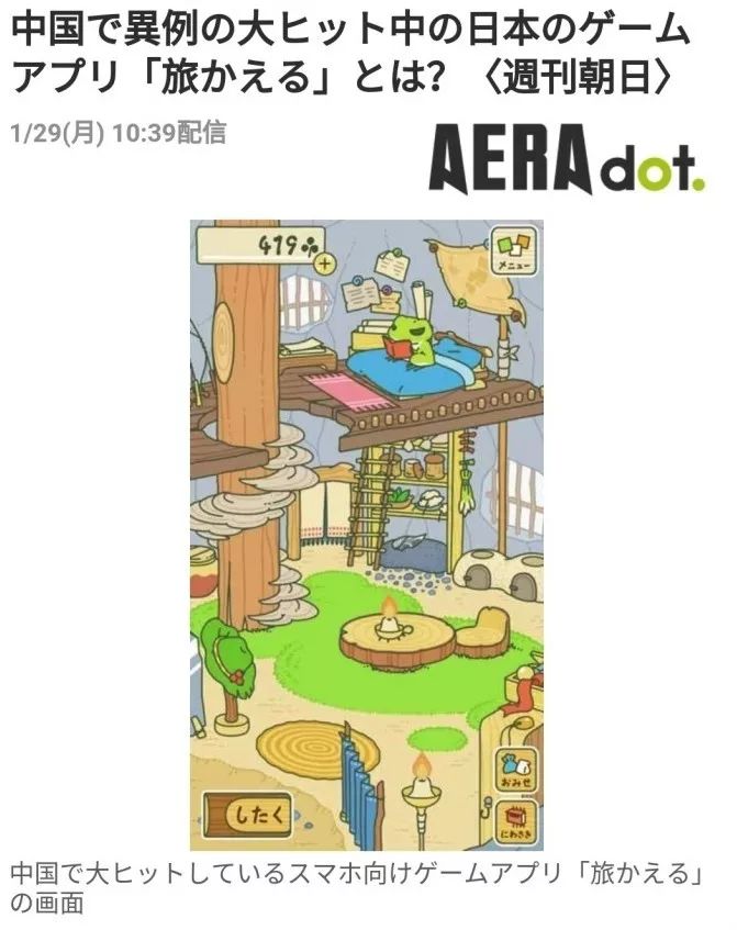 這款名叫《旅行青蛙》(《旅かえる》)的日本手游,把很多中國網(wǎng)友的微博和微信變成“池塘”,“呱呱”聲此起彼伏。朋友圈突然多了一群等蛙回家的“老母親”,不管自家“崽”做了什么都要曬照片。
