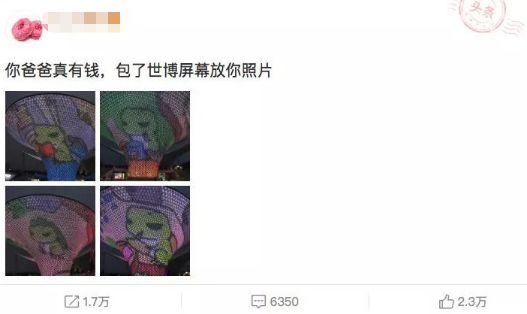 你或許已經(jīng)聽說了,近日,有位土豪“爸爸”租下上海世博展覽館外的屏幕,播放“蛙兒子”的各種萌照,堪稱最近曬“蛙”族的最高境界。