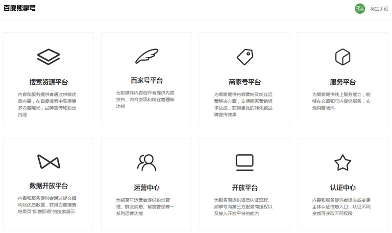 百度熊掌號是站長、自媒體、開發(fā)者、商家等各種內(nèi)容和服務提供者入駐百度的身份賬號,該賬號可實現(xiàn)包括百度搜索資源平臺、百度數(shù)據(jù)開放平臺、百家號自媒體平臺、用戶運營平臺等各類平臺的能力互通。基于熊掌號,各內(nèi)容和服務提供者可以讓自己創(chuàng)作的優(yōu)質(zhì)內(nèi)容或服務被百度索引和推薦,從而更好的觸達全網(wǎng)用戶。基于熊掌號,各內(nèi)容和服務提供者也可以實現(xiàn)精準的用戶留存和全面的互動交流,從而深度滿足用戶多樣化需求。