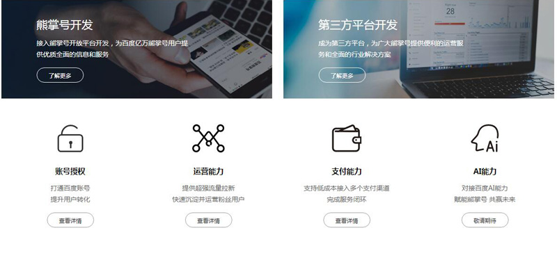 第一,針對品牌推廣方面,全面凸顯內(nèi)容和服務提供者的品牌價值。熊掌號支持將官網(wǎng)、百家號、官方APP、官方微博等全部內(nèi)容和服務鏈接到熊掌號上,有利于用戶品牌認知的統(tǒng)一。此外,百度會在用戶的各種路徑上強化內(nèi)容和服務提供者的品牌。