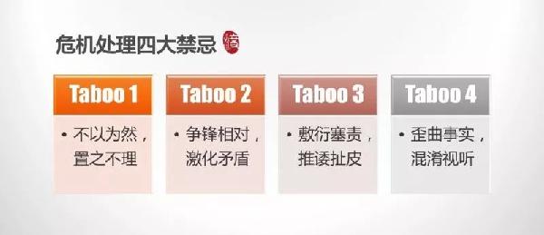在危機來臨時,往往很多企業(yè)(特別是傳統(tǒng)制造業(yè))因為缺乏媒體應(yīng)對經(jīng)驗,甚至沒有建立起公司的危機預(yù)防應(yīng)對機制(可參考危機公關(guān)備戰(zhàn)篇:運籌帷幄,決勝千里),所以在關(guān)鍵時候功虧一簣,信渡咨詢根據(jù)過往案例總結(jié)出危機處理時的五大原則四大禁忌供參考。