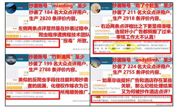 同時(shí),以抄襲150個(gè)不同的大眾點(diǎn)評(píng)賬戶