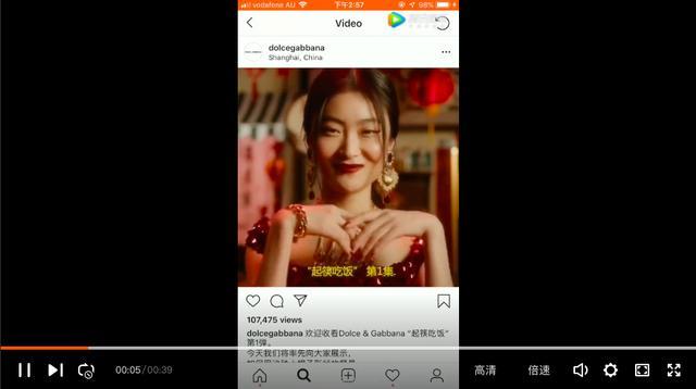 DG為了活動(dòng)預(yù)熱,拍了一組視頻。其中,有一個(gè)姑娘穿得有些奇怪,并拿著筷子吃披薩。老外對(duì)中國(guó)文化的理解肯定是不全面的,尤其是落伍的,這點(diǎn)大叔倒是可以理解。但這是一個(gè)導(dǎo)火索吧。DG官方微博已經(jīng)刪除了這條視頻,但在國(guó)外的社交網(wǎng)站據(jù)說(shuō)沒(méi)刪。