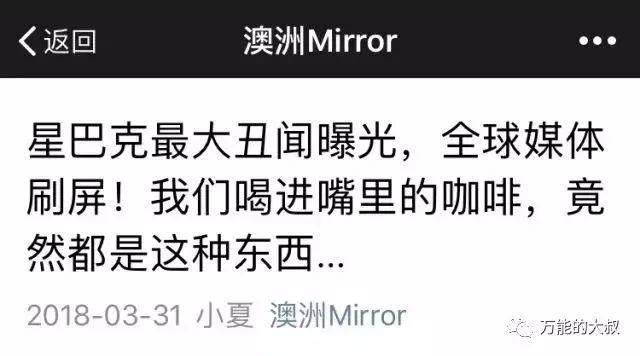 3月30日,星巴克迎來了一場(chǎng)躺槍的"危機(jī)公關(guān)"。原因是一篇名為《震驚!星巴克最大丑聞曝光!我們喝進(jìn)嘴里的咖啡,竟然都是這種東西…》刷屏文章,為增加"星巴克致癌"的可信度,文章還引用了美國(guó)一家法院的判決,要求星巴克必須要在所售咖啡的外包裝上標(biāo)準(zhǔn)"有毒"提醒。很快,整個(gè)輿論沸騰了,網(wǎng)上陸續(xù)出現(xiàn)"據(jù)說星巴克致癌"的消息。