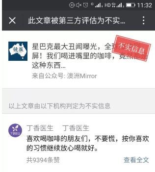 "星巴克咖啡致癌"謠言刷屏