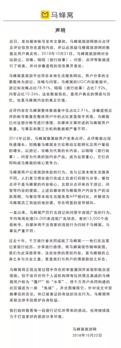 輿論攻擊下,馬蜂窩也進(jìn)行了回應(yīng)。