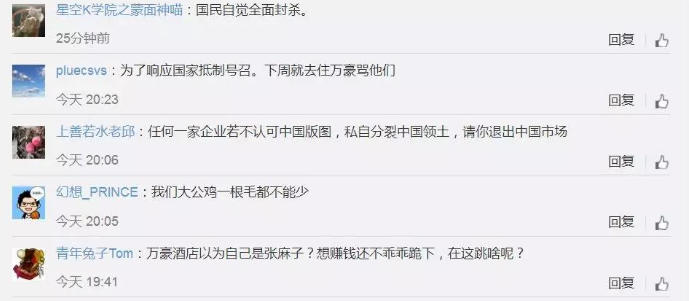 當(dāng)天下午,萬豪公關(guān)呼應(yīng)稱只是"系統(tǒng)錯(cuò)誤",然而網(wǎng)友并不買賬,隨后網(wǎng)友扒出,萬豪集團(tuán)旗下"萬豪禮賞"推特賬號(hào)還給藏獨(dú)賬號(hào)"西藏之友"的一篇貼文點(diǎn)贊。至此,萬豪徹底陷入信任危機(jī)。