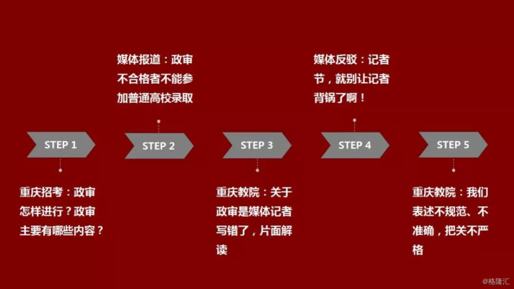 “央視《開學(xué)第一課》被全民吐槽”還只是媒體機(jī)構(gòu)作為輿情危機(jī)事件的主體,重慶高考“政審”風(fēng)波則可算得上是讓政府機(jī)關(guān)與媒體機(jī)構(gòu)成為同一輿情事件的一對(duì)CP。通過簡(jiǎn)單的事件回顧,我們可以發(fā)現(xiàn)此事有兩點(diǎn)值得注意:一是快速反轉(zhuǎn),二是否認(rèn)即打臉。當(dāng)然,這兩點(diǎn)是緊密關(guān)聯(lián)的,其連接所在是危機(jī)處置三要素中的“事實(shí)”要素。