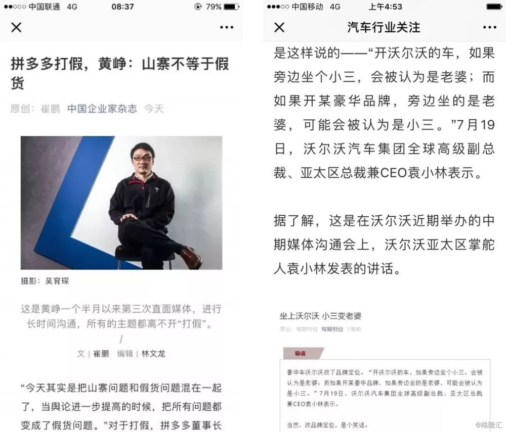 <五>“高管黑洞”現(xiàn)象,這基本是企業(yè)創(chuàng)始與高管團(tuán)隊(duì)的重災(zāi)區(qū),除了前文提到的俞敏洪“女性墮落”言論,還有諸如拼多多創(chuàng)始人黃崢的“山寨不等于假貨”論、沃爾沃亞太總裁袁小林的“小三”比方,都可算作此類情況。