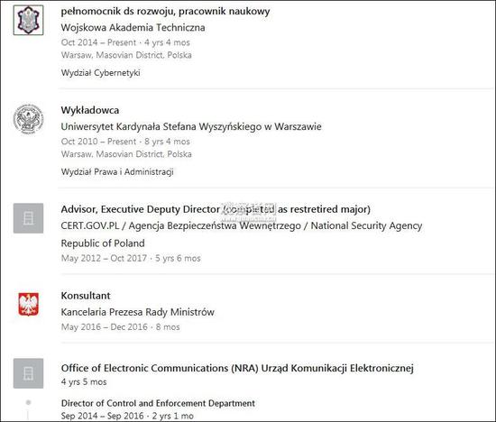 LinkedIn網(wǎng)站顯示,皮奧特自2000年至2017年長期在波蘭政府任職,有著10年從事情報(bào)工作的經(jīng)歷,目前在波蘭的幾所大學(xué)內(nèi)均有任職。但皮奧特的簡歷未提及其在Orange的工作經(jīng)歷,僅稱他如今是一名電信領(lǐng)域的顧問。