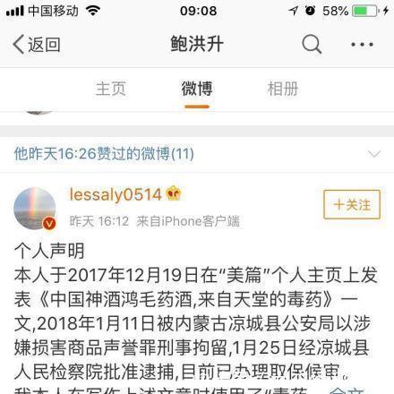 當(dāng)日17時(shí),鴻茅藥酒公司在微博上發(fā)表聲明,經(jīng)公司研究決定接受譚秦東本人所做的致歉聲明,并向涼城縣公安局撤回報(bào)案并涼城縣人民法院撤回侵權(quán)訴訟。