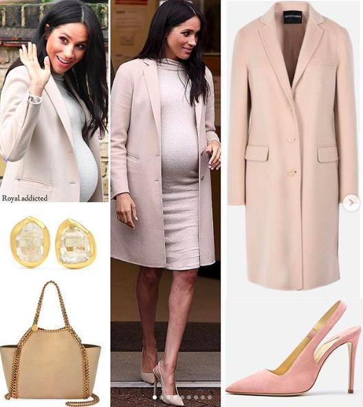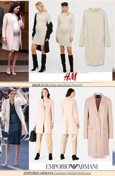 梅根著裝上是為一直以來(lái)群眾認(rèn)為她花太多錢置裝的一個(gè)反擊,居然讓人大跌眼鏡地穿起來(lái)來(lái)自H&M產(chǎn)婦系列的24.99英鎊高領(lǐng)連衣裙(大概250塊錢人民幣),而奶油色的外套來(lái)自阿瑪尼,Stella McCartney的迷你雙面手提包(1,145美元),耳環(huán)來(lái)自Pippa Small。