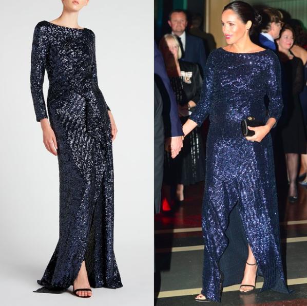 看官們可能對(duì)這件價(jià)值3495英鎊(約3.5萬(wàn)人民幣)的Roland Mouret設(shè)計(jì)的海軍亮片禮服感覺(jué)很眼熟。因?yàn)樗雌饋?lái)與瑞典的維多利亞公主在2011年懷孕期間穿著的諾貝爾獎(jiǎng)?lì)C獎(jiǎng)典禮晚禮服非常相似。只不過(guò)梅根的禮服有前開(kāi)衩細(xì)節(jié),看來(lái)這種設(shè)計(jì)完全為孕婦準(zhǔn)備呀。