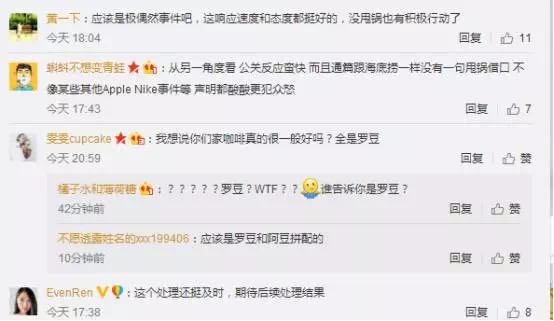 這是在太平洋咖啡發(fā)布說明下的微博評論,前幾位幾乎都是一水的“公關(guān)好評”。但是隨后便有不少網(wǎng)友表示看不下去,質(zhì)疑前排評論是水軍。