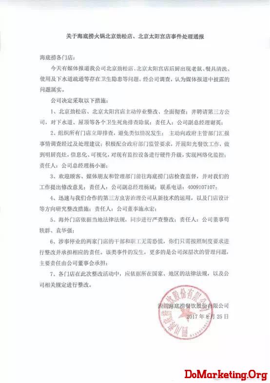 也正是這兩份文件讓海底撈的危機(jī)事件變成了“滿分公關(guān)”show time,原本可能會給品牌帶來嚴(yán)重負(fù)面影響的危機(jī)就這樣在一片高歌贊揚(yáng)中過去了。