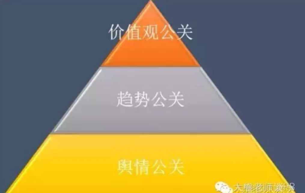 這也是我的一篇老文章,具體不細說了,大家可以直接看。輿情公關基本就是應激性的公關,只有做事和平事兩個功能,一般缺乏建設性。到了趨勢公關就好很多,會有建設性,主要是鼓吹自己做的事情符合大趨勢的。價值觀公關是最頂級的公關,就是啥也不談,只談價值觀,比如你想想馬云,他談的事情基本就沒有具體業(yè)務,具體趨勢,具體風口。一說下一個風口是什么,大家就把張小龍?zhí)С鰜砹?,當然他不是公關而是微信的掌門人,但他的公開課,其實也是一個公關屬性的操作。