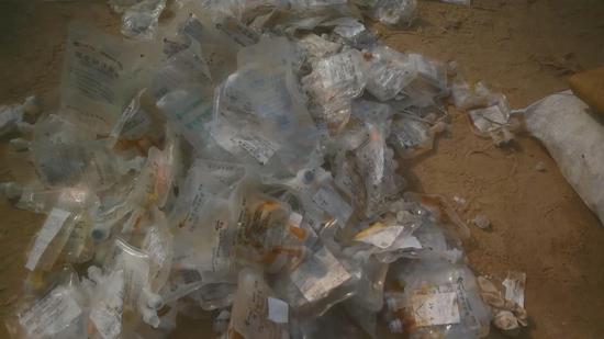除了輸液管,這里還有注射器、血包等多種醫(yī)療廢物。