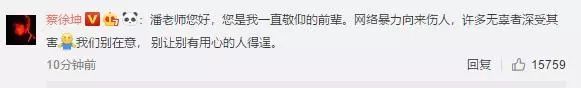 接下來的故事發(fā)展讓我們見識了流量明星危機公關(guān)的優(yōu)質(zhì)高效。首先是蔡徐坤本人親自到在潘長江微博下道歉,“您是我一直敬仰的前輩,網(wǎng)絡(luò)暴力向來傷人…… 別讓別有用心的人得逞。”,這段話怎么看都沒毛病,放低姿態(tài)以獲取同情分,直接指出“別有用心的人”、“網(wǎng)絡(luò)暴力”才是罪魁禍首,一舉兩得給自己和真愛粉澄清了!