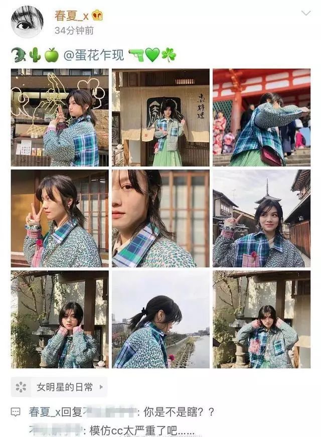 不過相比祝福,也涌出了一些意難平的瓜眾。這不,近日春夏曬出了一組很可愛的九宮格美照,粉絲都在為她這條微博點贊,但評論區(qū)里卻有人提出了質(zhì)疑:“模仿cc太嚴重了吧……”。所以“cc”是誰?就是金大川的前女友啊,拿現(xiàn)任跟前任作比較,這在戀愛中是大忌,也難怪春夏直接在評論區(qū)里怒懟了這位網(wǎng)友:你是不是瞎?哈哈~婊貝們品一品她們的style,有相似的地方?