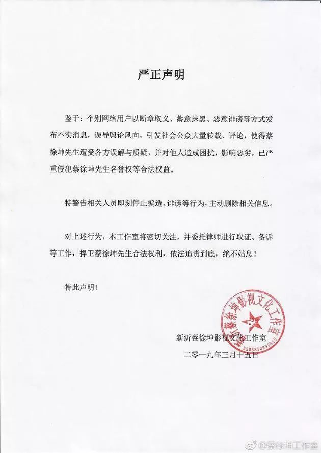 接著工作室發(fā)聲明,稱有人蓄意抹黑,蔡徐坤經(jīng)成功擺脫“粉絲手撕老藝術(shù)家”的輿論標簽,通過正確的危機公關(guān),其身份已經(jīng)轉(zhuǎn)化為網(wǎng)絡(luò)暴力的受害者,還有就是蔡徐坤粉絲也顯示出了良好的危機公關(guān)協(xié)同作戰(zhàn)能力,直言這個鍋我們不背,都是黑粉在搞事情,還列出了證據(jù)……只是流量明星正確的危機公關(guān),能否給故事一個“理智追星”的完美大結(jié)局,婊哥也不知道,看后續(xù)咯。