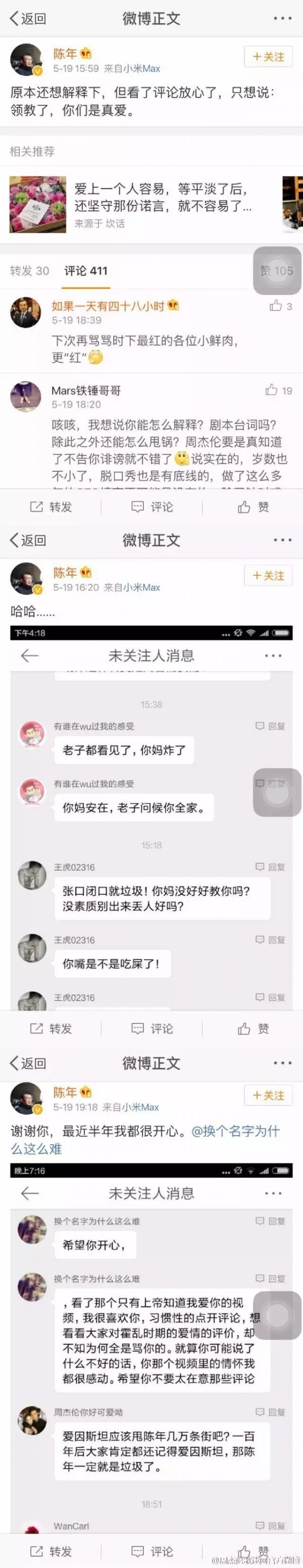 更不可思議的是,陳年在微博上非但沒有道歉,還繼續(xù)大放厥詞,與周杰倫粉絲對立,連發(fā)多條微博,都是穆旦的詩,引發(fā)了更大的口水戰(zhàn)。