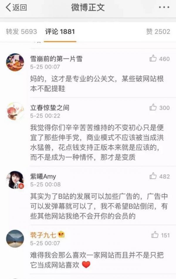 最后的最后,陳睿用一句熱血滿滿的承諾,挽回了幾乎全部B站用戶的信任,“b站未來有可能會倒閉,但絕不會變質(zhì)。”