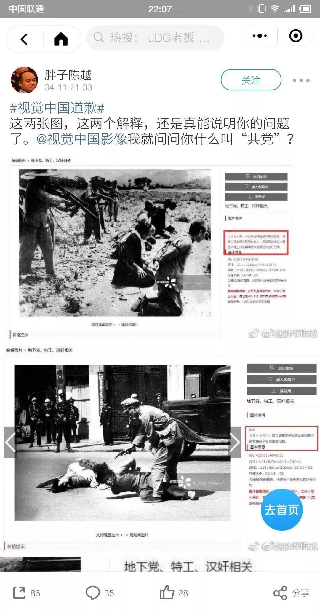 事態(tài)一發(fā)不可收拾,愛跟熱點(diǎn)且積怨已久的自媒體們,開始輪番的“攻擊”,官方媒體也開始定調(diào)。最關(guān)鍵的是,視覺中國(guó)平臺(tái)上,更多的違規(guī)照片問題開始被喜歡“挖墳”的網(wǎng)友們開始爆出。@視覺中國(guó) 在幾個(gè)小時(shí)后回應(yīng),并首次道歉。