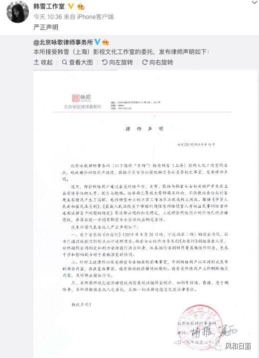 韓雪工作室還同步甩出律師函,請大家立即刪除歪曲事實的言論。