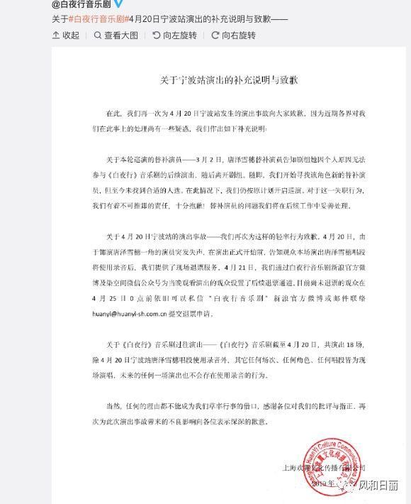 2,錯過了最理想的情況,那就在第一波回應(yīng)的時候認(rèn)真道歉,深刻反思,同時可以對當(dāng)晚買票觀眾做一定補(bǔ)償(畢竟買票是為了看100%的現(xiàn)場音樂劇)