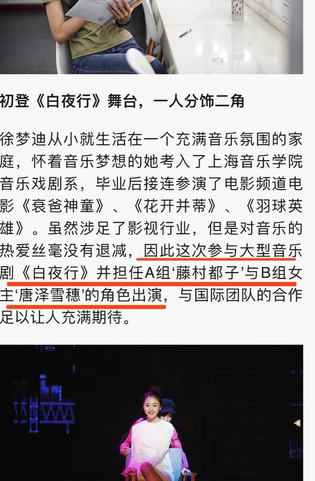 事件爆發(fā)后,網(wǎng)絡(luò)上出現(xiàn)最多的疑問(wèn)是:“A角突發(fā)失聲,為何不用B角?”之前擔(dān)任唐澤雪穗B角的,是一位叫徐夢(mèng)迪的音樂(lè)劇演員。去年演出時(shí),徐夢(mèng)迪是作為女配角藤村都子A角登臺(tái)演出。在演配角的同時(shí)兼任女主角的B角,但今年她的名字直接從名單中消失了。