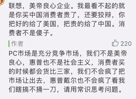中美硬件產(chǎn)品差異,質(zhì)疑提了這么多年了,聯(lián)想的輿情肯定早就掌握,然而聯(lián)想竟然讓這種質(zhì)疑之聲無(wú)限放大,放任自流,從未做讓人信服的系統(tǒng)闡釋,反而怪罪網(wǎng)友惡意發(fā)揮,從這個(gè)角度說(shuō),聯(lián)想的公關(guān)的確是不合格的。