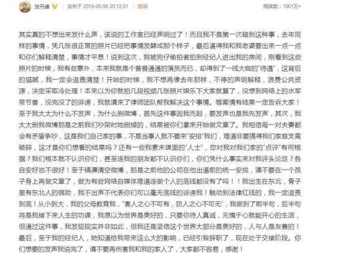 前不久,張丹峰就出軌風波再發(fā)聲明,其公關能力也備受觀眾質疑,聲明是小學生文才不說,而且甩鍋他人更是引起群嘲。他的聲明不反思自己和經(jīng)紀人的親密關系,反去責怪洪欣不識大體,關鍵時候清空微博。而自己的經(jīng)紀人畢瀅知道他左右為難,于是引咎辭職。按理說,明星的聲明應該都是滴水不漏,本著保護家人去的,但是張丹峰的聲明卻讓人感覺是在保護畢瀅。