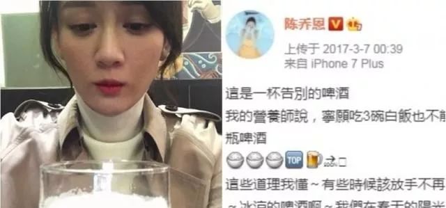 又有爆料稱陳喬恩去年3月才在微博上發(fā)文透露,營(yíng)養(yǎng)師提醒她寧愿吃3碗白飯也不能喝1瓶啤酒,并感概地寫下「這是一杯告別的啤酒」,結(jié)果戒酒不到1年,又因?yàn)榫岂{上頭條。