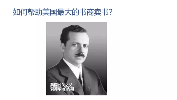 1930年代,美國幾大書商找到他,請(qǐng)他用公關(guān)幫助書商賣書。各位,你如果是伯內(nèi)斯,會(huì)如何用公關(guān)幫助書商賣書?