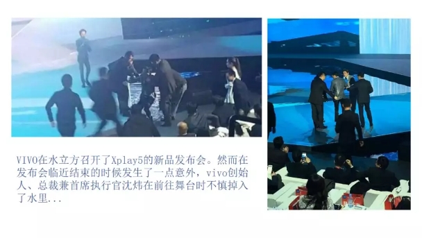 不光模特,總裁也辛苦。VIVO手機(jī)在水立方開新品發(fā)布會(huì),總裁上臺(tái)時(shí)掉水里了,主持人何炅趕緊圓場(chǎng)——“遇水則發(fā)!”各位,請(qǐng)問這是策劃的,還是自然的?