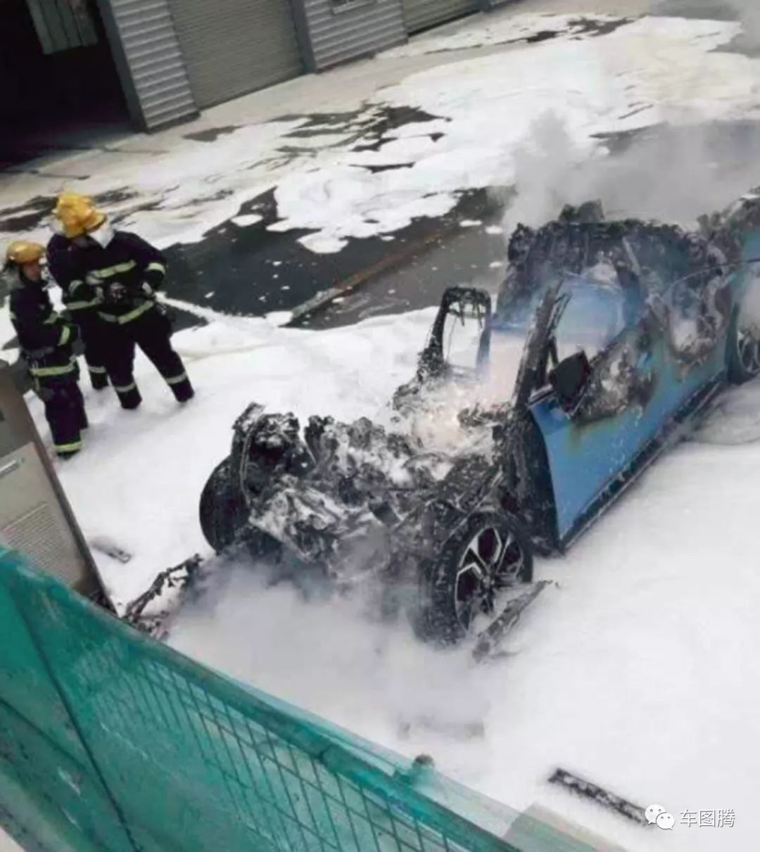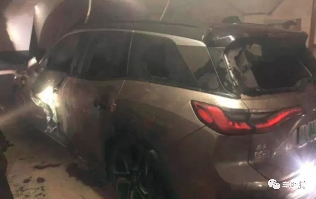 (5月16日,上海地庫,蔚來ES8插著充電插頭冒煙起火)