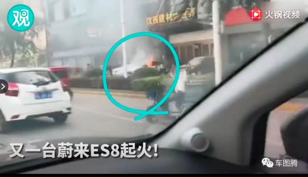 6月14日,武漢,一臺(tái)蔚來ES8冒煙起火;