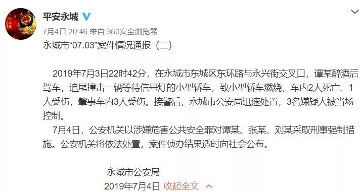 然而“官方”到底公布了哪些情況呢?負(fù)責(zé)處理此次案件的永城公安局此前在@平安永城 發(fā)布過兩次情況通報(bào),均沒有涉及酒駕女車主的精神情況。
