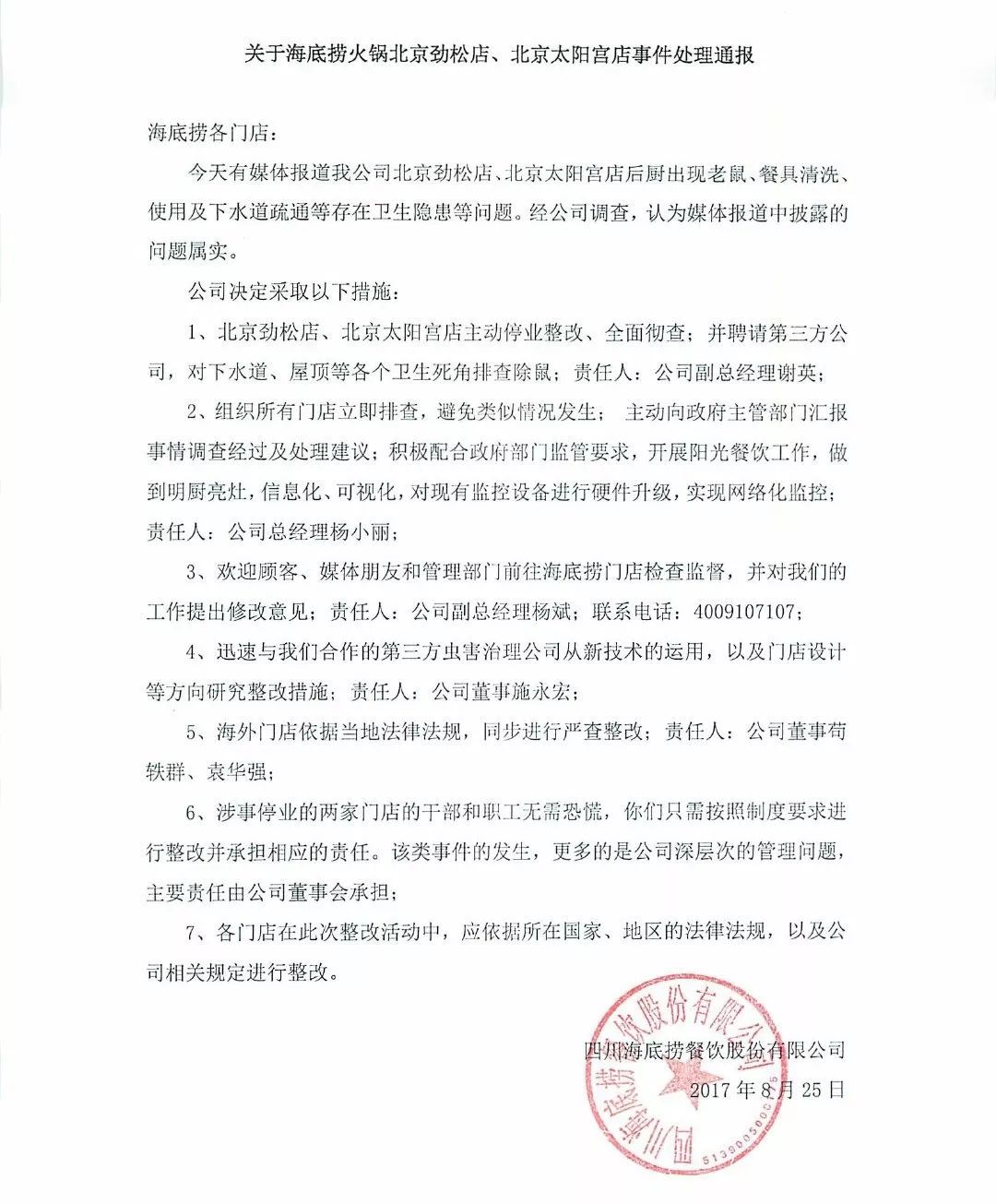 當然,在危機公關方面,也有值得學習的榜樣。2017年8月,海底撈被曝出后廚老鼠亂竄、清潔員用火鍋漏勺掏下水道等現象,一時間被推上風口浪尖。而海底撈在三小時之后便作出回應,立馬發(fā)布了7則處理通報,其過程迅速高效、結果令人信服,很快便平息了負面輿論。