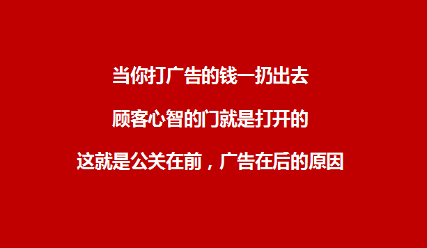 這段話的第二個點是,要先公關(guān),后廣告。公關(guān)要負(fù)責(zé)為廣告提供內(nèi)容,提供可信度。而廣告,則用來重復(fù)公關(guān)的核心信息。