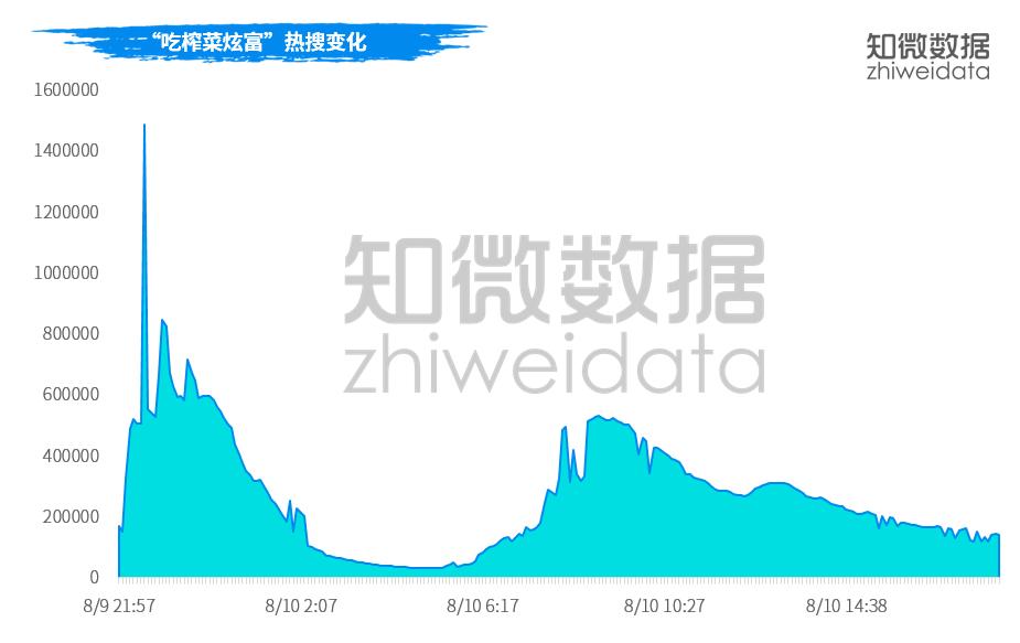 而到8月9日21:57,“吃榨菜炫富”又登上熱搜,眾多美食、娛樂博主以及普通網(wǎng)友紛紛帶上話題開始“炫富”。