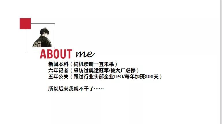 在上面的PPT上(圖2)我也寫了一些細節(jié)。了解的朋友會知道,這個職業(yè)做起來是比較累的,尤其是企業(yè)危機公關(guān),處理起來壓力很大。但凡事都有兩面,壓力也伴隨著收獲。
