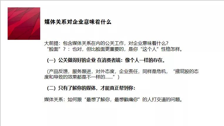 第二點,媒體關(guān)系的發(fā)揮