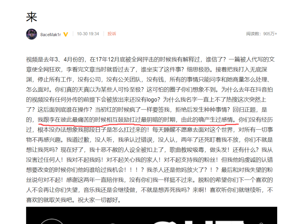 文中PGone透露視頻是去年3、4月份的。他表示因為2年前那場風(fēng)波遭到全網(wǎng)抨擊,人生一度陷入最低谷,沒有工作、沒有公司、沒有錢,所以很多事情都和李小璐商量怎么處理。在彼此最痛苦的時期,他承認(rèn)和李小璐產(chǎn)生過感情。