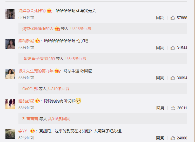 對此有網(wǎng)友則在她微博底下留言調(diào)侃:“哈哈哈哈翻譯:與我無關(guān)”“哈哈哈哈哈哈哈哈 怕了吧”