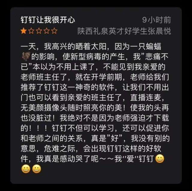 釘釘被教育部選中作為給小學(xué)生上網(wǎng)課的平臺(tái),本以為自己因?yàn)闃I(yè)務(wù)過(guò)硬得到官方認(rèn)可是2020上天選中的寵鵝,萬(wàn)萬(wàn)沒想到11億次下載,,整體評(píng)分卻只有一星。