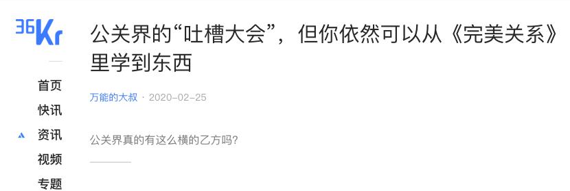 大叔挺認(rèn)同 36 氪的小編幫大叔改的標(biāo)題,把這部劇叫做 " 公關(guān)界的吐槽大會 "。