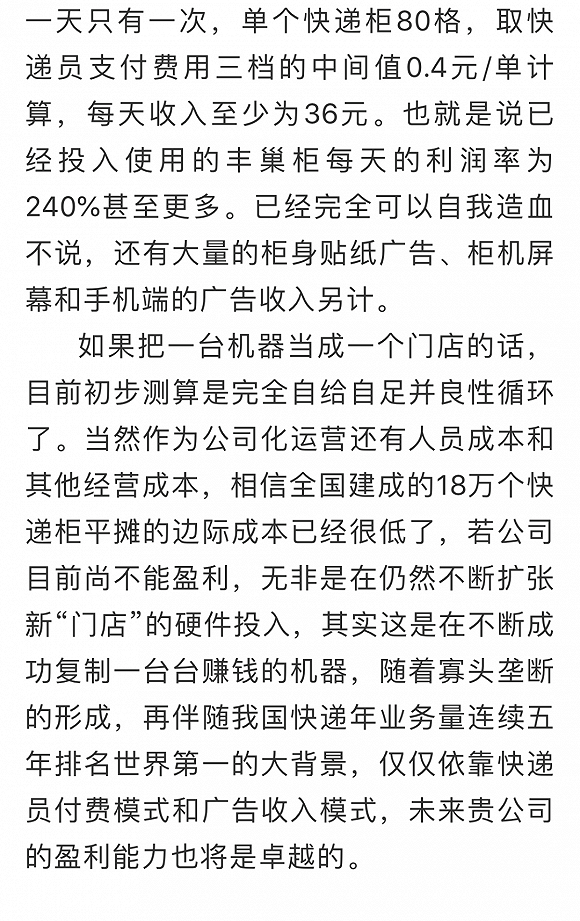 而豐巢卻在危機(jī)發(fā)生之后,拿出一個(gè)2019年的數(shù)字,大致描述如下:
