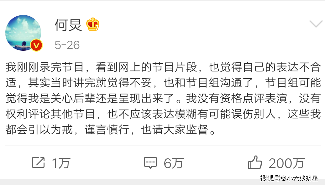 昨天何炅的一則道歉文上了熱搜,原因就是在《拜托了冰箱》節(jié)目中,何老師在為網(wǎng)友們對于歐陽娜娜的傷害打抱不平的時(shí)候,由于言辭不當(dāng),可能誤傷了其他節(jié)目或者節(jié)目中的導(dǎo)師,所以在節(jié)目播出的當(dāng)晚就立即發(fā)表了道歉文,先是表達(dá)了自己的初衷,又針對問題發(fā)表了自己的看法,馬上就贏得了大家的原諒和認(rèn)可,有人說何炅的這幾句話價(jià)值百萬,雖然有些夸張,但和自從進(jìn)入2020年以來就一直陷入爭議中的肖戰(zhàn)相比,何老師的做法堪比于教科書級的示范,值得所有的藝人和團(tuán)隊(duì)學(xué)習(xí),下面就來剖析一下何老師這則內(nèi)容的精妙之處: